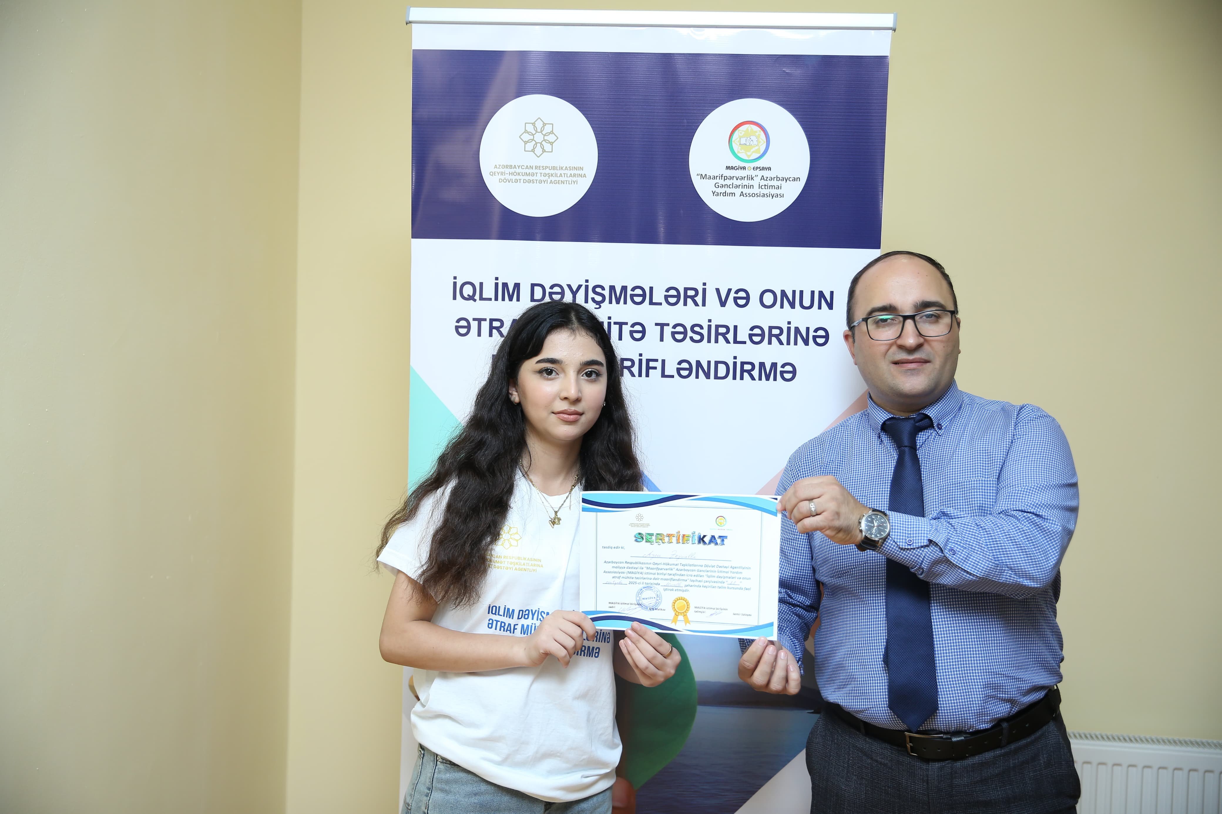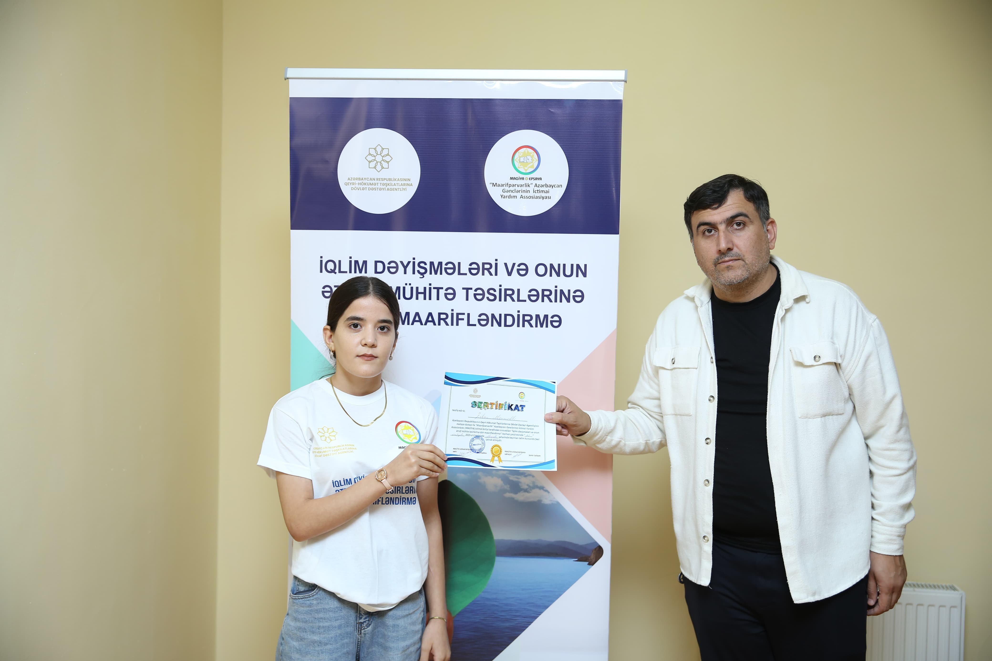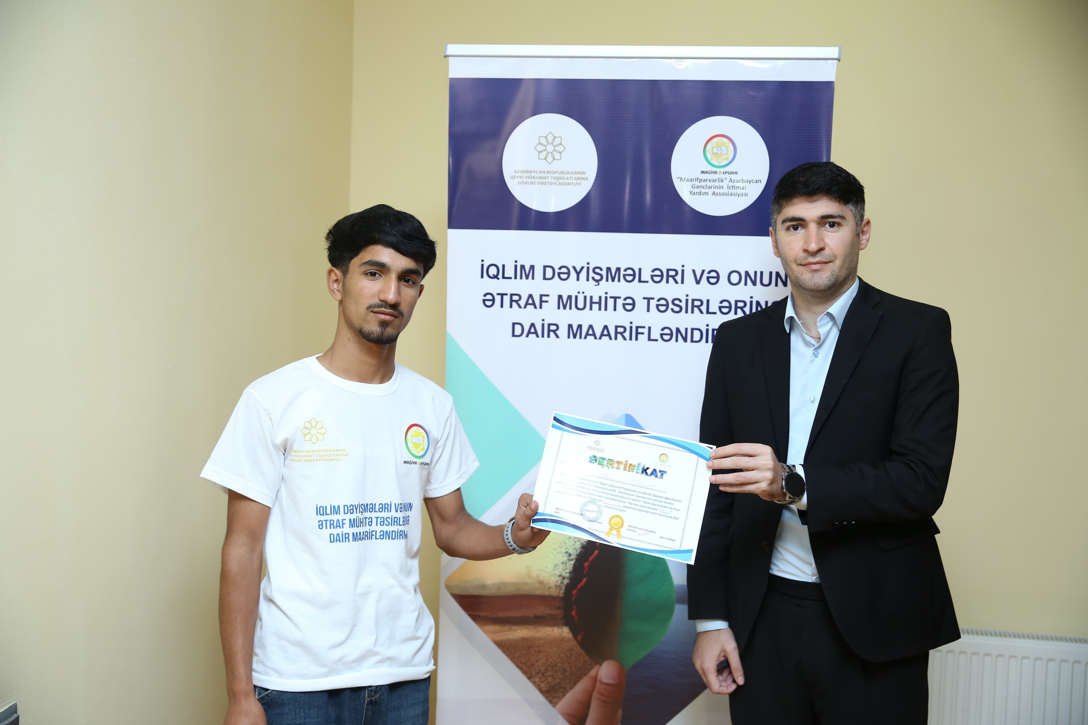 Təlimin sonunda bütün iştirakçılara sertifikatlar və üstündə layihə adı yazılmış, QHT Agentliyinin və təşkilatın loqosu üzərində olan qısaqol köynəklər təqdim edilmişdir.