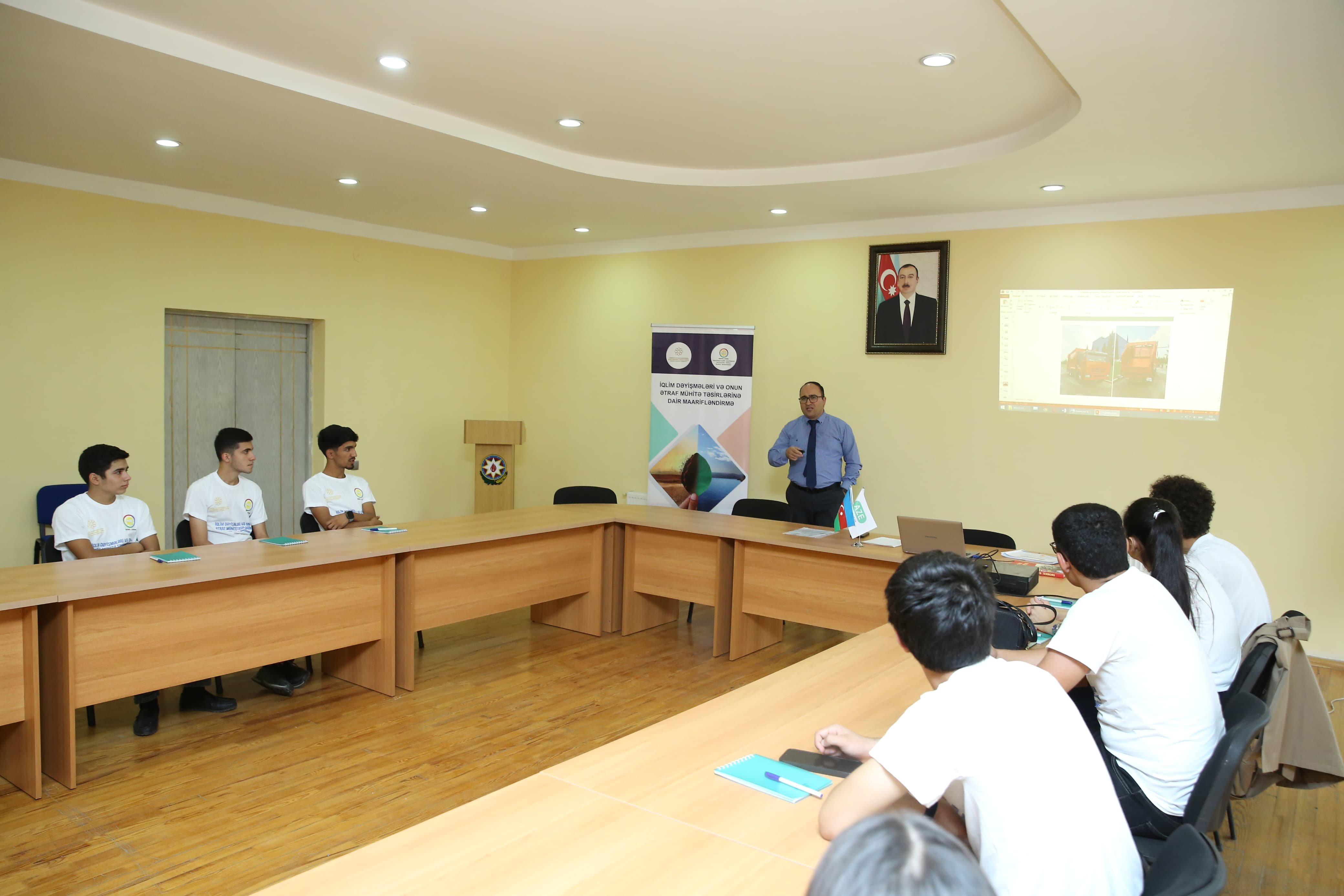 Lənkəran-Astara Regional Gənclər və İdman İdarəsinin dəstəyi ilə təşkil olunan təlim kursunda işçi heyətlə iştirakçılar arasında iqlim dəyişmələri və onun ətraf mühitə təsirləri sahəsində bir çox mövzuların – “İqlim dəyişmələri, onun ətraf mühitə və cəmiyyətə təsirləri, Ətraf mühitin qorunması, meşə və su ehtiyatlarının mühafizəsi, Tullantılar və onların idarə olunması, Təbii sərvətlər, onların növləri, alternativ enerji mənbələri və Ekologiya hüququ: Ekoloji qanunvericilik – təbiətdən istifadə və təbiəti mühafizə” müzakirə olunmuş və aidiyyəti mövzularla bağlı müxtəlif sosial çarxlar izlənilmişdir. Təlim zamanı müxtəlif interaktiv üsullardan, təqdimatlar, beyin həmləsi, fokus qrup müzakirələri, interaktiv qrup işləri, enercayzerlər, iştirakçılarla və mütəxəsislərlə qarşılıqlı fikir mübadiləsi kimi fərqli metodlardan geniş istifadə olunmuşdur.