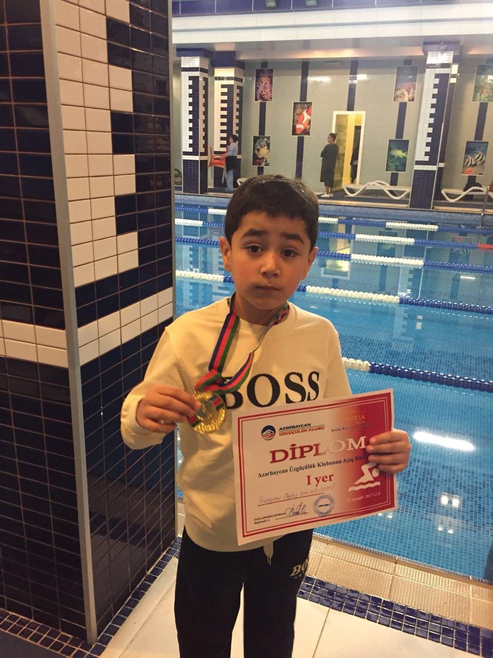 Oqtay Hüseynovun nəvəsi Oqtay Hüseynov da 7 yaşından sırf üzgüçülüklə məşğuldur.