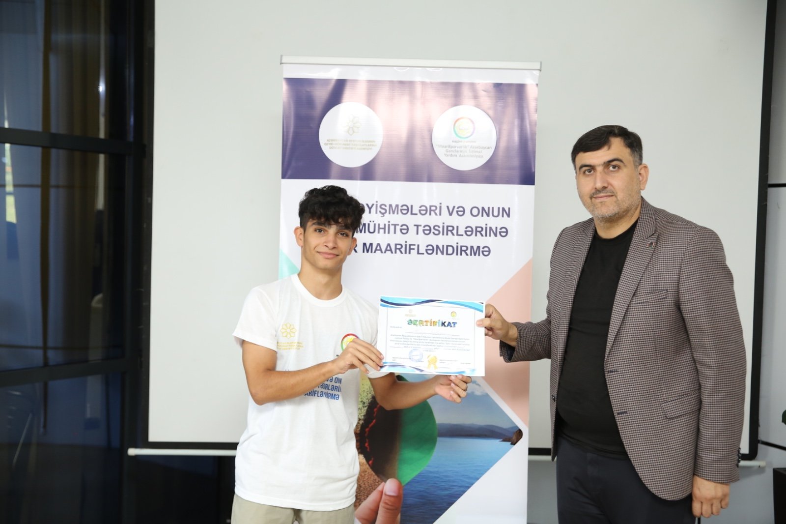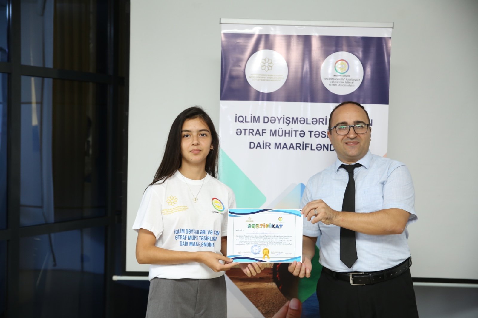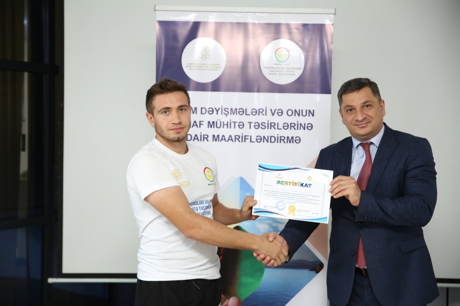 Təlimin sonunda bütün iştirakçılara sertifikatlar və üstündə layihə adı yazılmış, QHT Agentliyinin və təşkilatın loqosu üzərində olan qısaqol köynəklər təqdim edilmişdir.