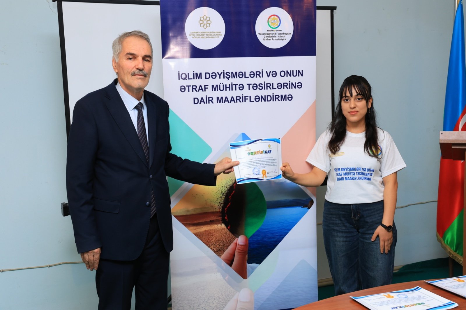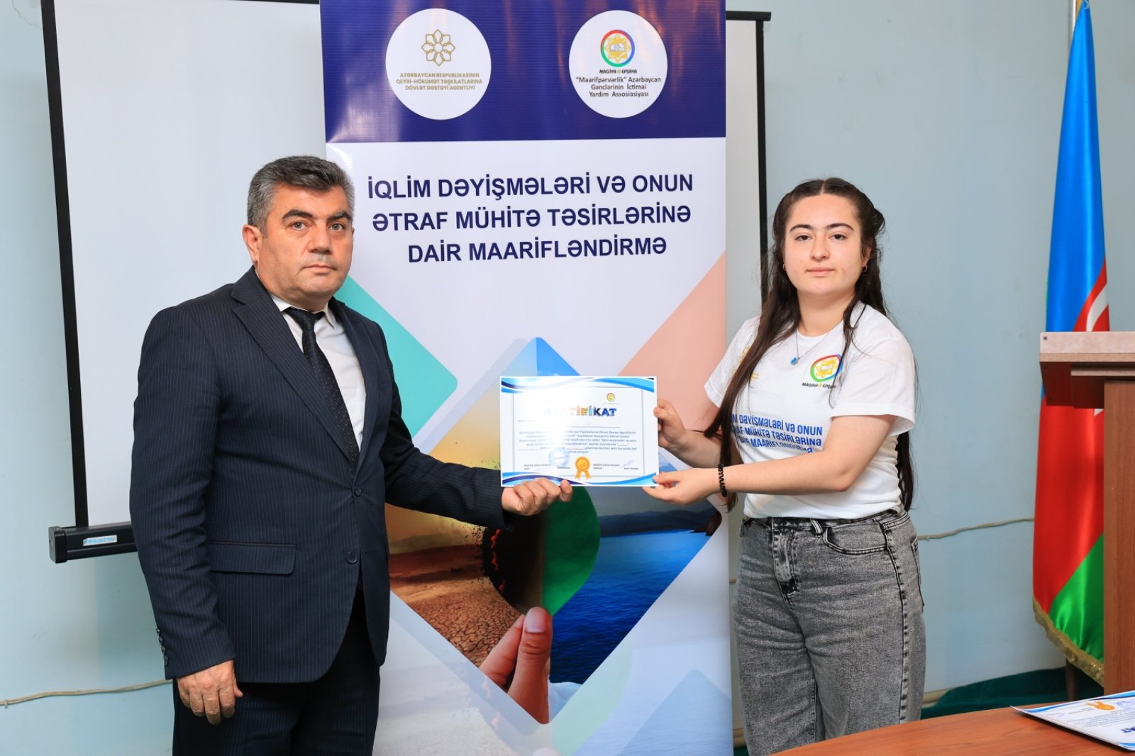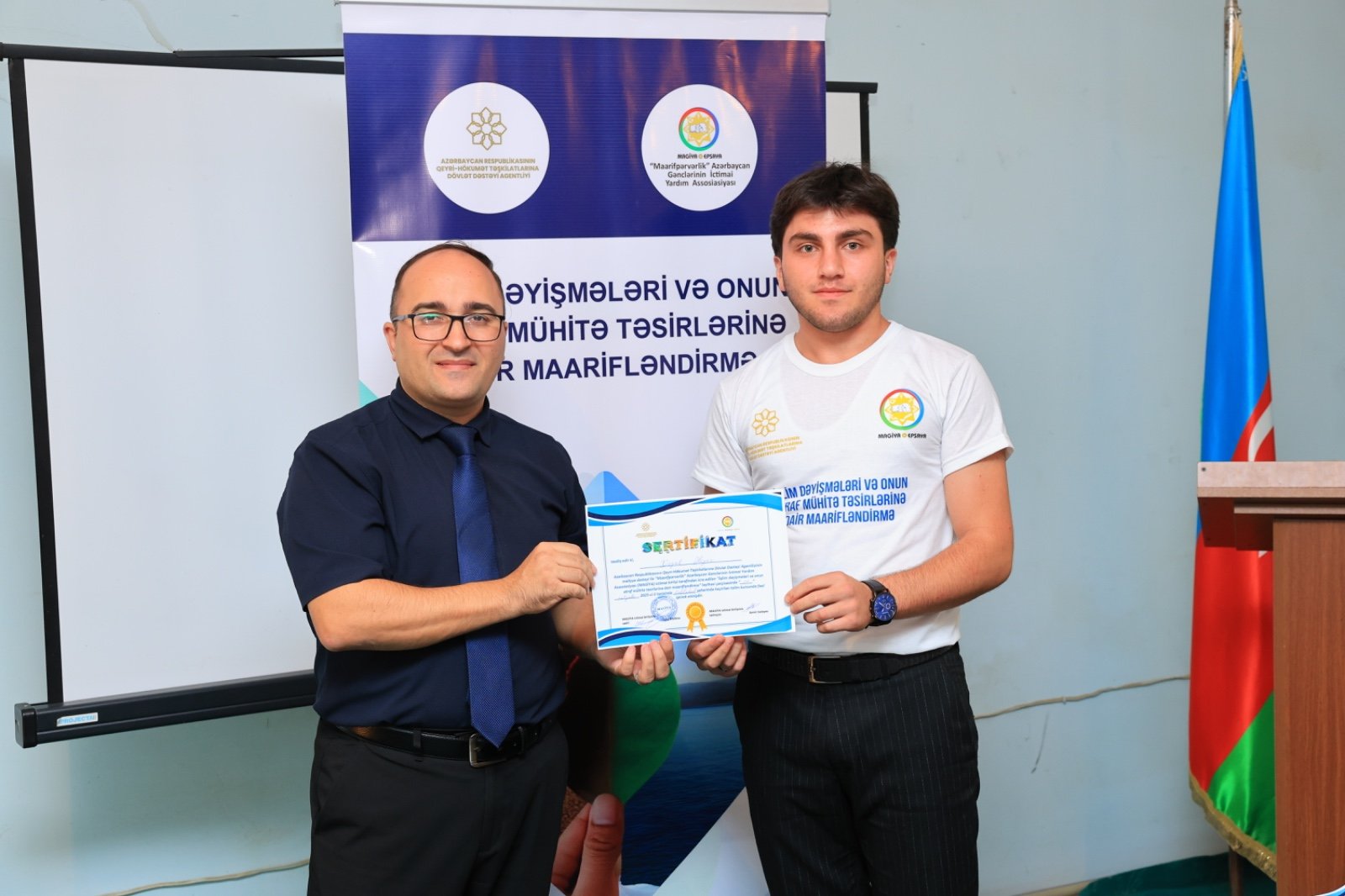 Təlimin sonunda bütün iştirakçılara sertifikatlar və üstündə layihə adı yazılmış, QHT Agentliyinin və təşkilatın loqosu üzərində olan qısaqol köynəklər təqdim edilmişdir.