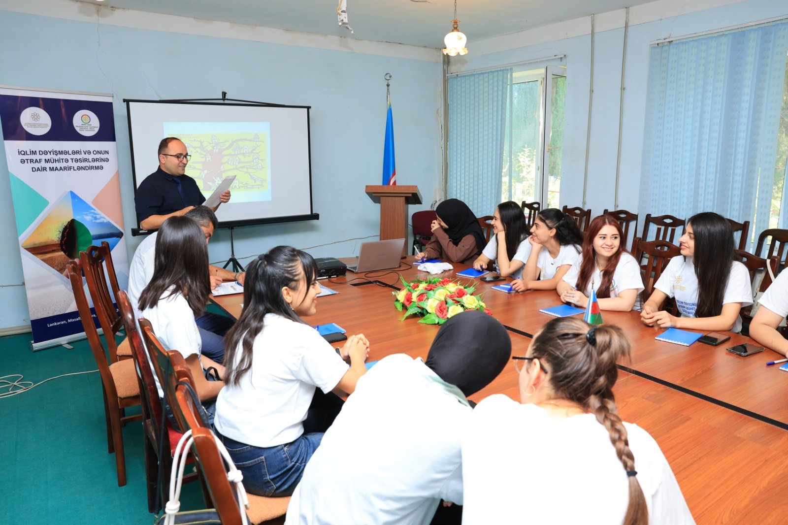 Lənkəran-Astara Regional Gənclər və İdman İdarəsinin dəstəyi ilə təşkil olunan təlim kursunda işçi heyətlə iştirakçılar arasında iqlim dəyişmələri və onun ətraf mühitə təsirləri sahəsində bir çox mövzuların – “İqlim dəyişmələri, onun ətraf mühitə və cəmiyyətə təsirləri, Ətraf mühitin qorunması, meşə və su ehtiyatlarının mühafizəsi, Tullantılar və onların idarə olunması, Təbii sərvətlər, onların növləri, alternativ enerji mənbələri və Ekologiya hüququ: Ekoloji qanunvericilik – təbiətdən istifadə və təbiəti mühafizə” müzakirə olunmuş və aidiyyəti mövzularla bağlı müxtəlif sosial çarxlar izlənilmişdir. Təlim zamanı müxtəlif interaktiv üsullardan, təqdimatlar, beyin həmləsi, fokus qrup müzakirələri, interaktiv qrup işləri, enercayzerlər, iştirakçılarla və mütəxəsislərlə qarşılıqlı fikir mübadiləsi kimi fərqli metodlardan geniş istifadə olunmuşdur.