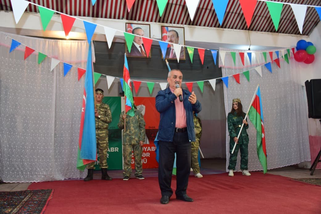 Ərkivan Xeyriyyə Cəmiyyətinin sədri Cəfər Cəfərov tədbir iştirakçılarını Vətən müharibəsində qazanılan möhtəşəm Zəfərin 5 illiyi münasibətilə təbrik edib.