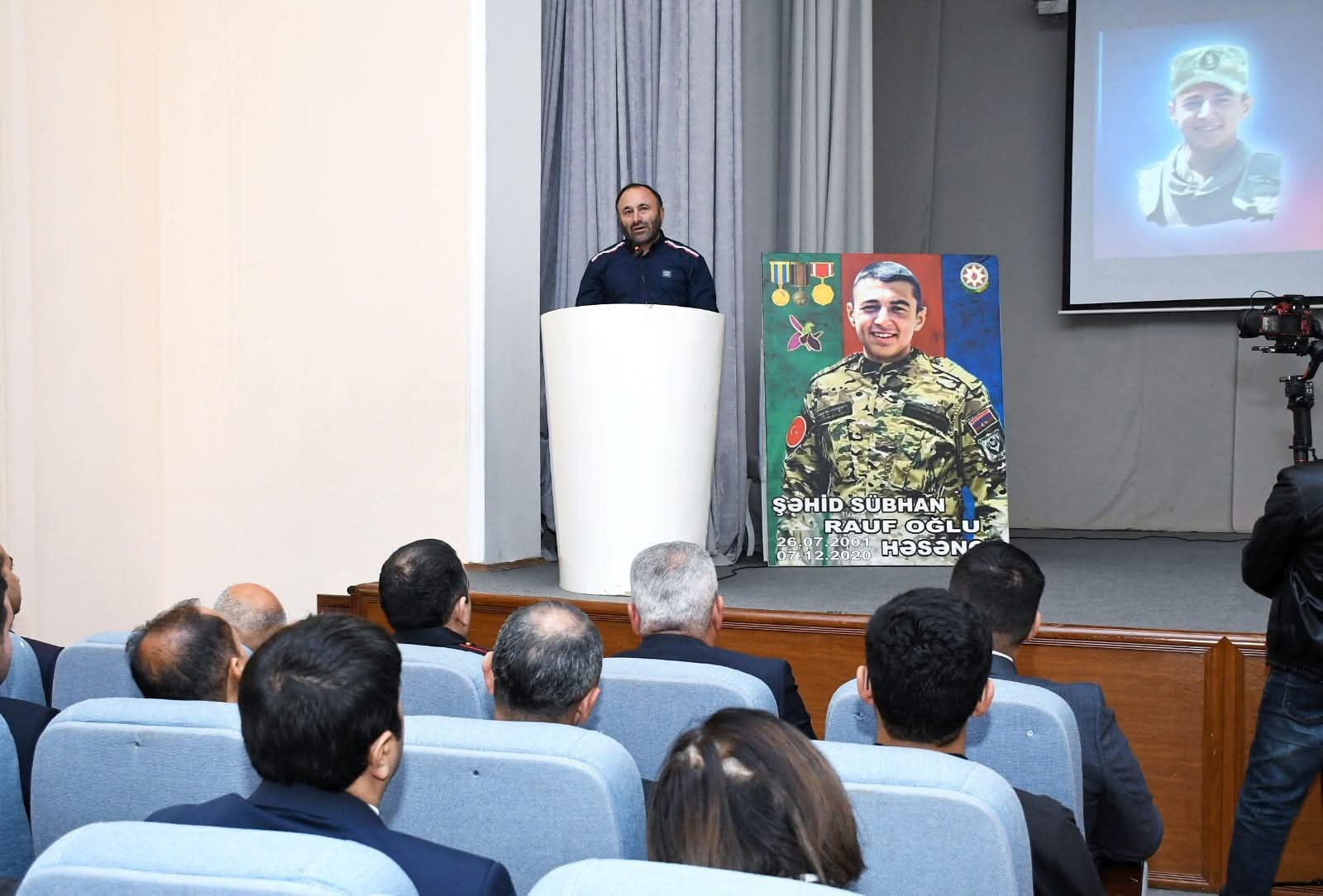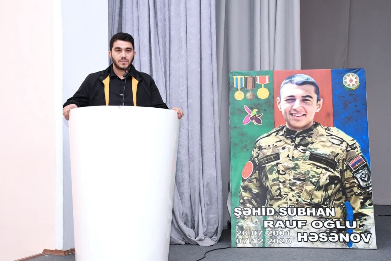 Tədbirdə çıxış edən şəhid Sübhan Həsənovun anası Ülkər Həsənova, Şəhid atası Teymur Hüseynov, şəhid Sübhan Həsənovun döyüş yoldaşı Ceyhun Şiriyev və iş adamı Abdulla Abdullayev şəhidlə bağlı xatirələrini bölüşmüşlər.