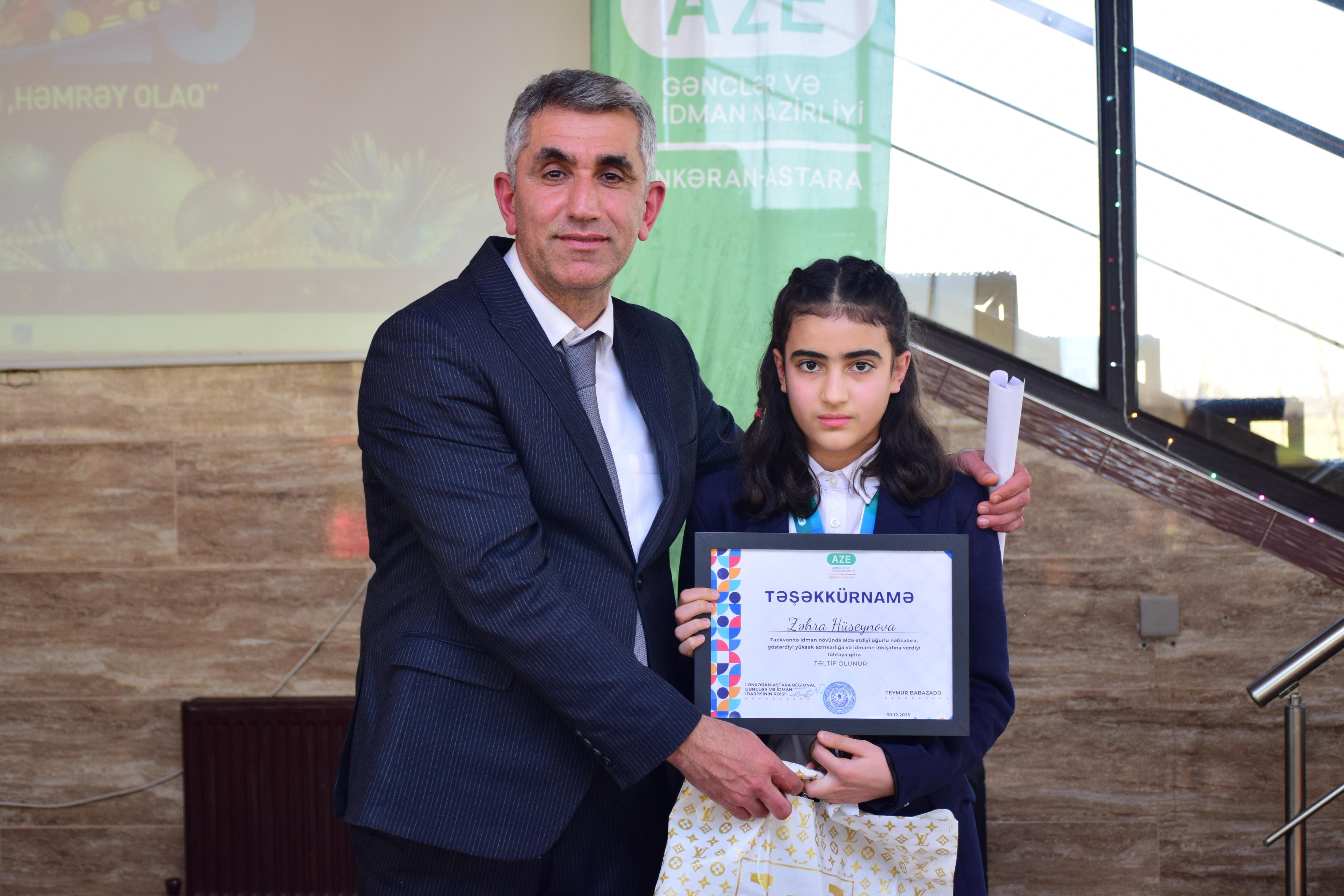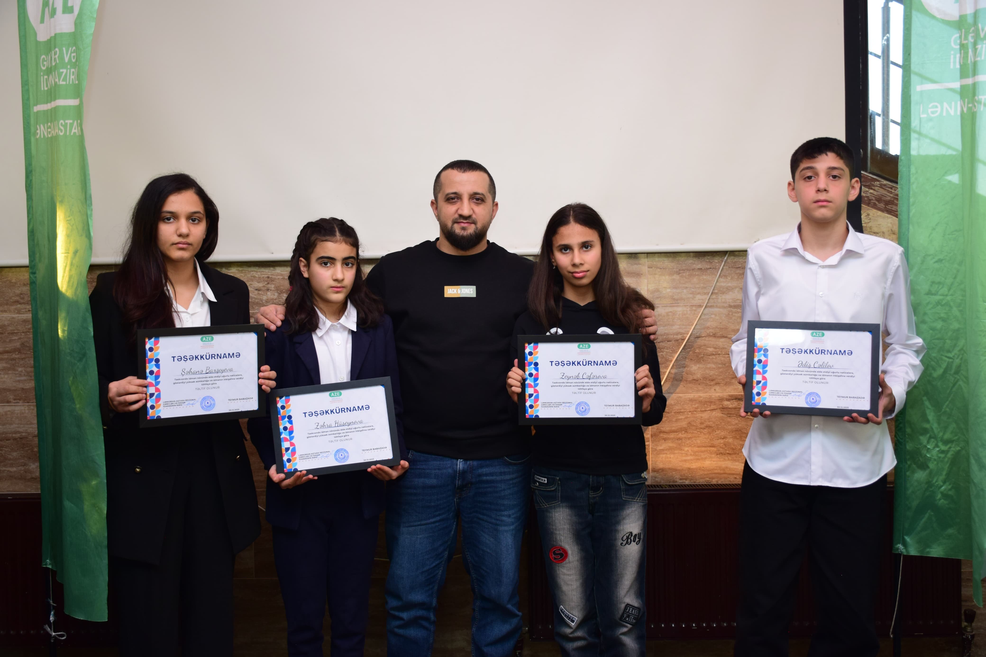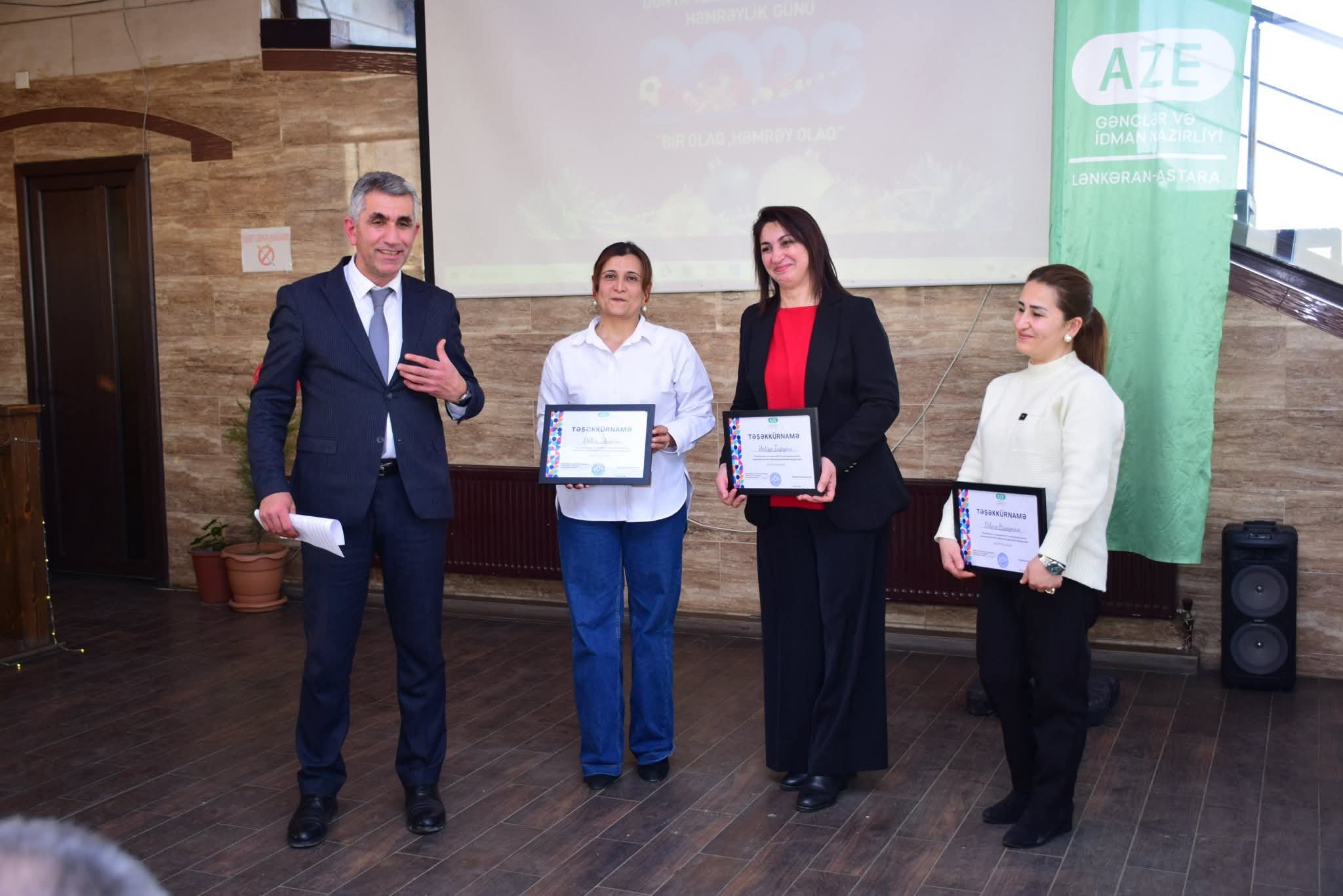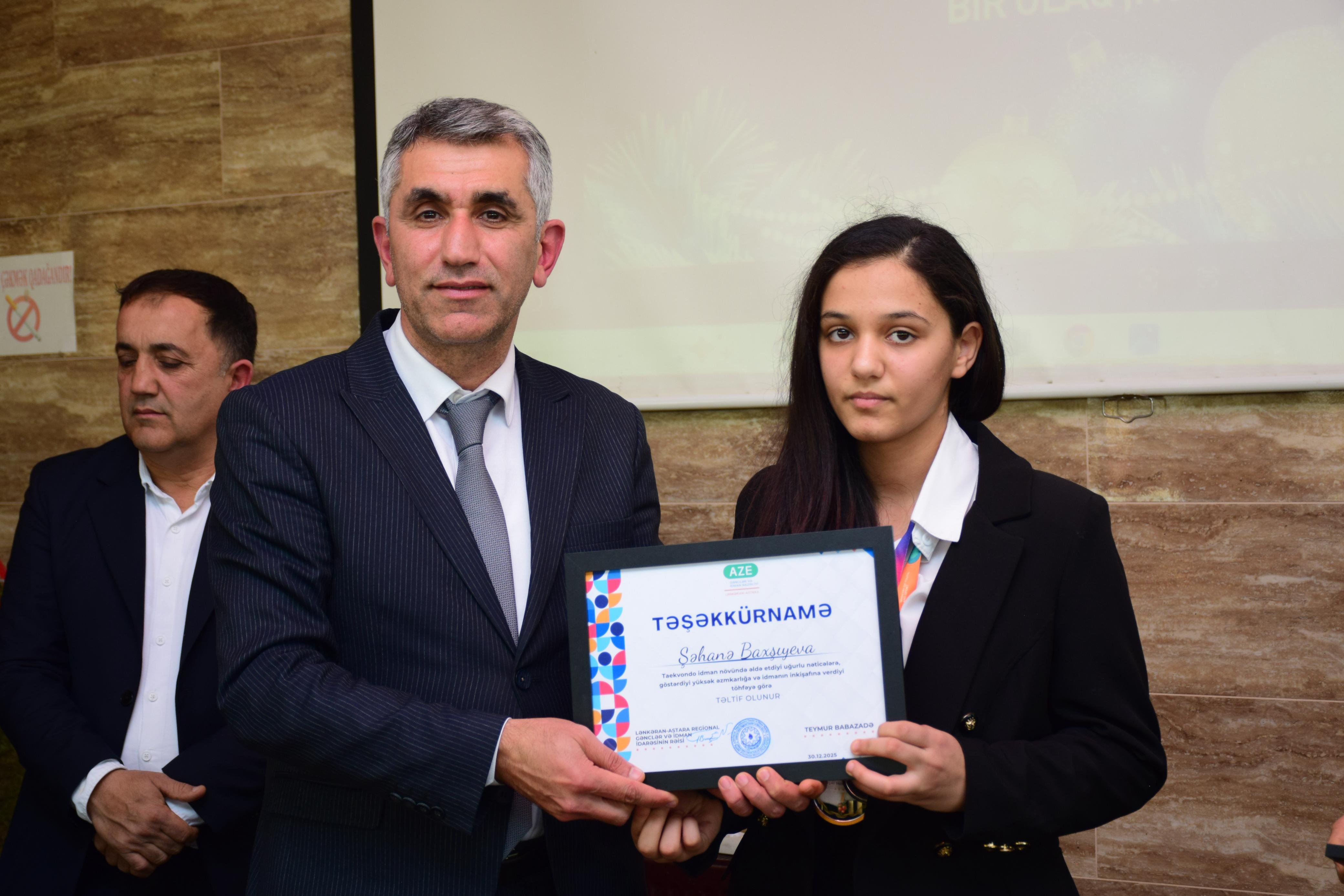 Tədbirin sonunda il ərzində fəallığı və uğurları ilə fərqlənən gənclər və idmançılar Lənkəran–Astara Regional Gənclər və İdman İdarəsinin təşəkkürnamələri və hədiyyələri ilə təltif olunublar.